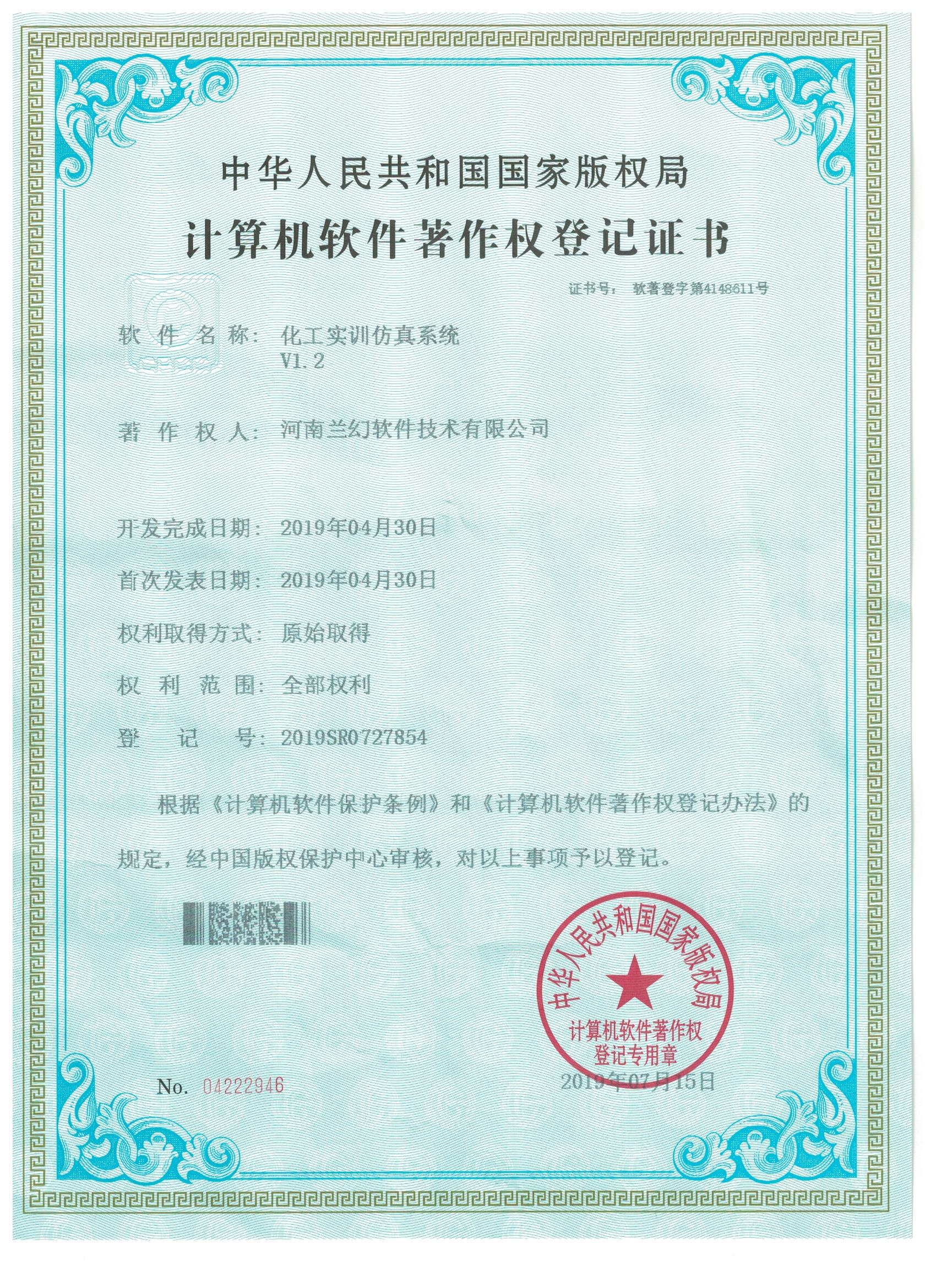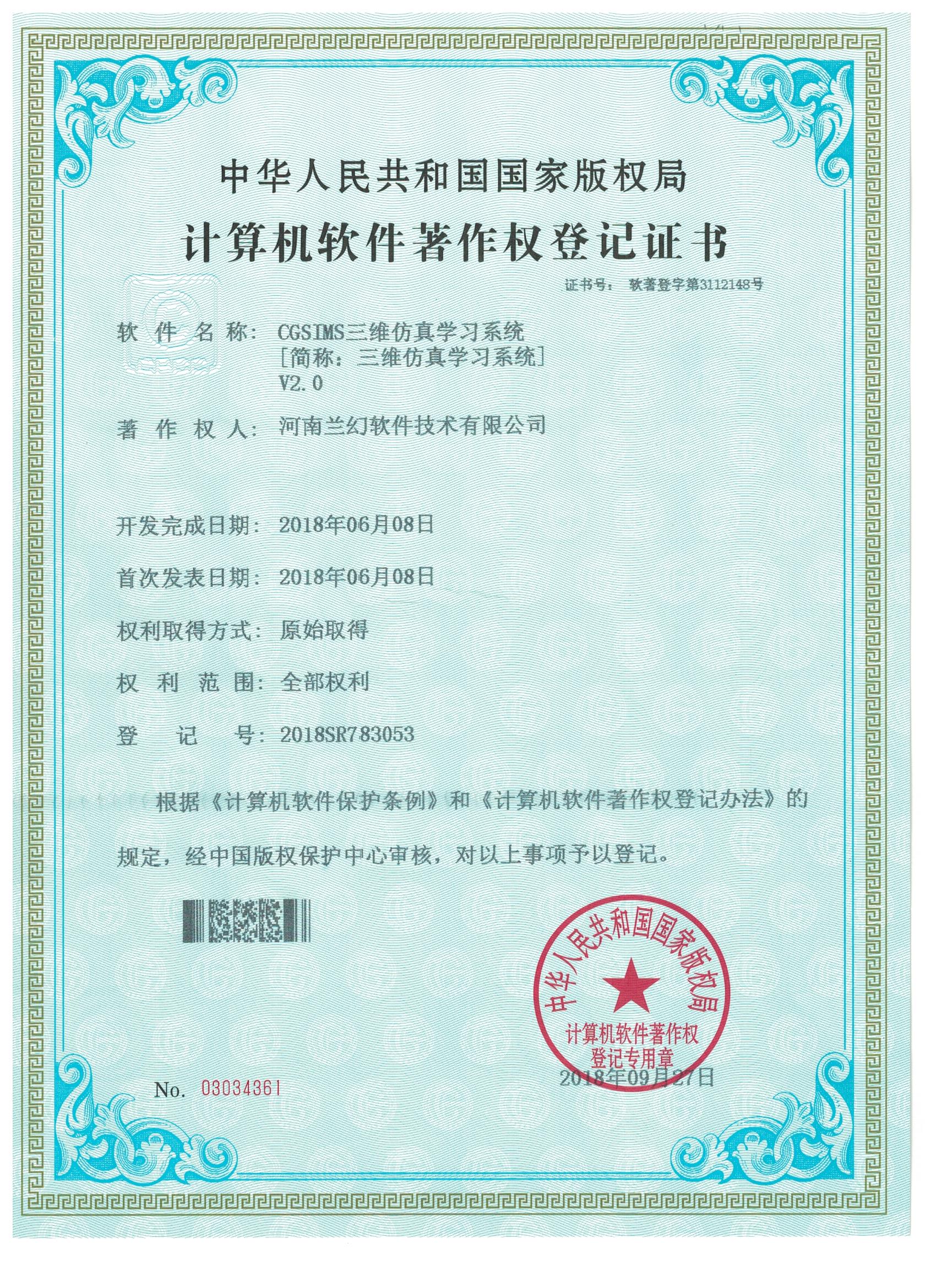化工實訓(xùn)仿真著作權(quán)證書 CGSIMS-三維仿真學(xué)習(xí)系統(tǒng)著作權(quán)證書 區(qū)域網(wǎng)絡(luò)血壓管理系統(tǒng)著作權(quán)證書